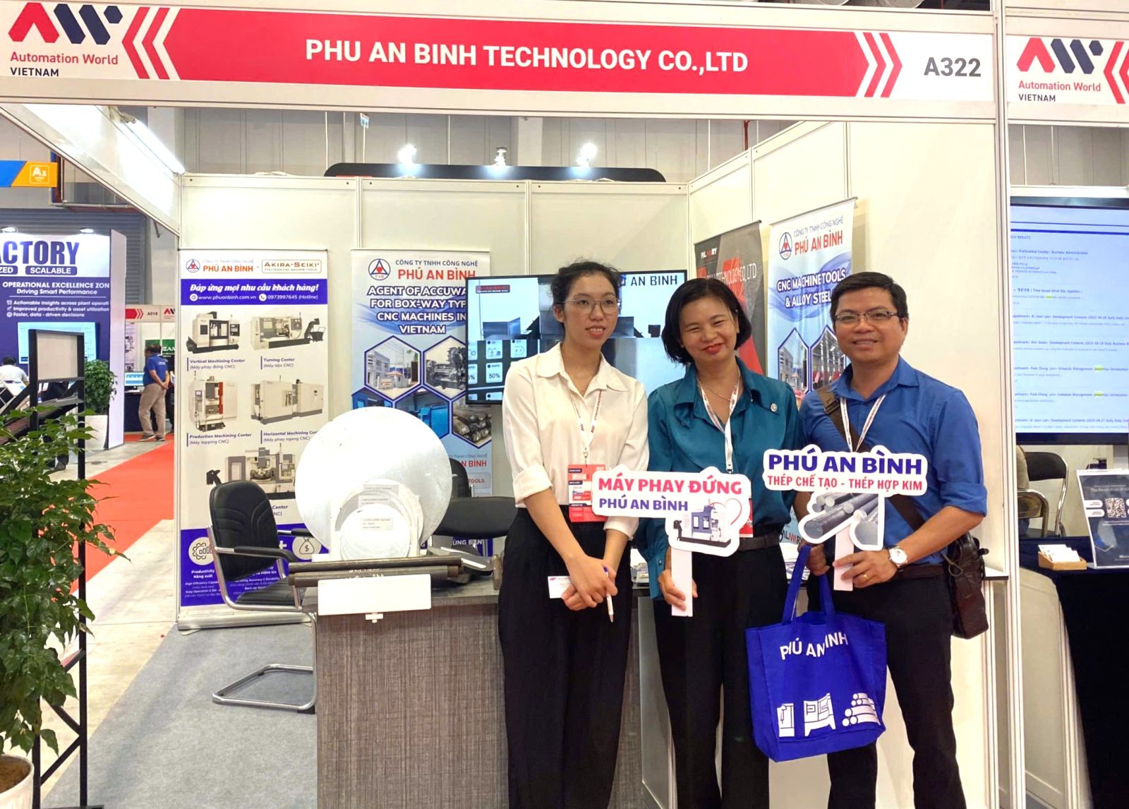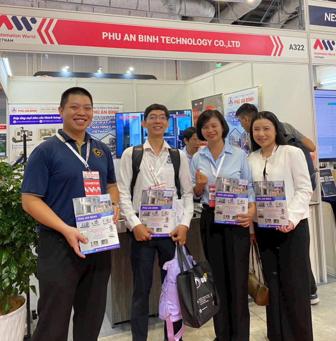 Gian hàng của Phú An Bình tại AW Vietnam 2025 đã thu hút sự quan tâm của đông đảo khách hàng trong và ngoài nước. Đây là dịp để công ty trình bày các giải pháp công nghệ tiên tiến, đồng thời kết nối trực tiếp với nhiều doanh nghiệp sản xuất đang tìm kiếm đối tác uy tín trong lĩnh vực CNC, cơ khí chế tạo và tự động hóa.